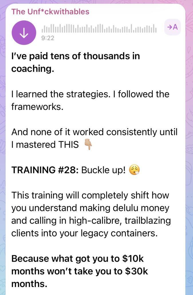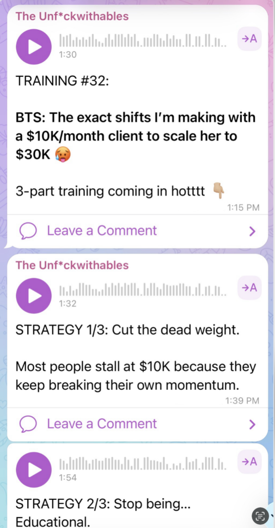 - Behind-the-scenes breakdowns of the strategic moves I’m making in real time – offers, pricing, launches and sales tactics.